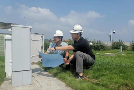 ▲ 刘涛涛(左)和同事查看水库水文数据采集信息 摄影:陈自力