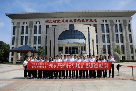 7月13日,湖北区域公司党总支与公司党群工作部党支部共计30人参观湖北省党风廉政教育基地,公司党委副书记刘想华以普通党员的身份参加活动。贪廉一念间,悲喜两重天,在警示教育基地现场,一桩桩发人深省的警示案例,一份份充满痛与泪的忏悔书,让党员们更加深刻感受到落马官员腐化堕落的心路历程,进一步筑牢不敢腐、不能腐、不想腐的思想堤坝。在廉政文化广场,全体党员干部庄严肃立,敲响廉政警示钟,警钟长鸣、声声入耳,提醒党员干部时刻保持自警自省不忘初心,永葆清正廉洁的政治本色。