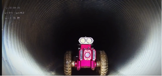 图2?CCTV机器人在地下管道内爬行检测的动态抓拍(摄影-赵红霞)