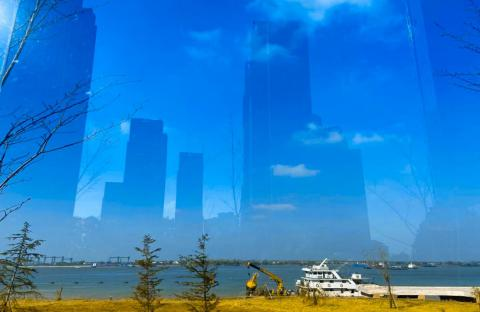 摄影爱好者在江东水生态公园进行摄影练习? 拍摄:肖佳法