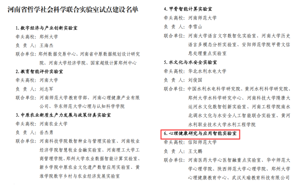 “心理健康研究与应用智能实验室”获批省哲学社会科学联合实验室试点