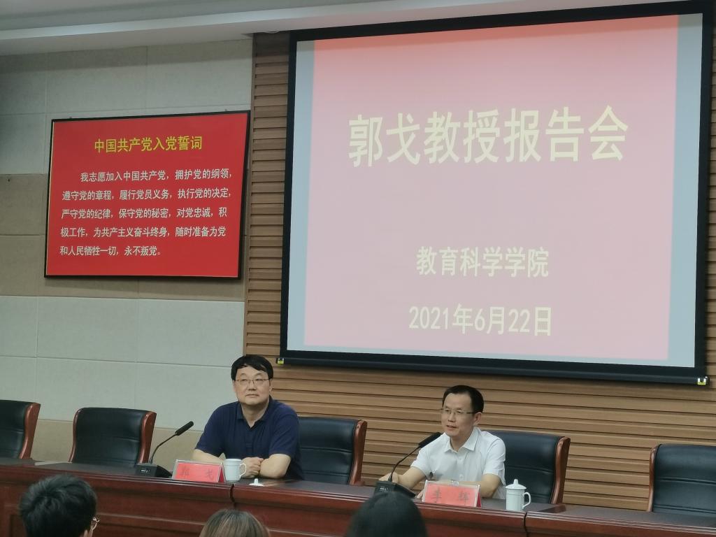 时间:2021-06-23 15:47:28 来源: 作者: 阅读: 次6月22日下午,应教育科学学院的邀请,人民教育出版社党委书记、副社长郭戈教授于301会议室开展讲座。本次讲座由我院党委书记李辉主持,2019级、2020级教育学专业学生聆听了讲座。
