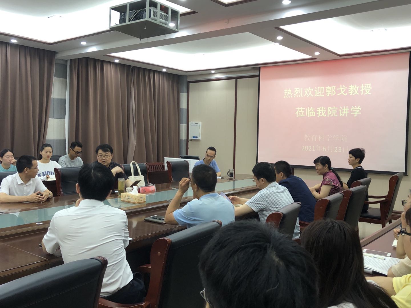 时间:2021-07-02 12:18:05 来源: 作者: 阅读: 次6月23日上午9点,应教育科学学院邀请,人民教育出版社总编辑、《课程·教材·教法》主编郭戈在教科院402会议室举行了学术报告会,教科院部分教师、研究生参加了此次报告。