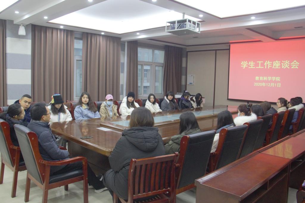 时间:2020-12-03 13:15:33 来源: 作者: 阅读: 次12月1日下午,教育科学学院于教科楼402会议室召开学生工作座谈会,教育科学学院党委副书记李贵杰、团委老师牛洁楠及2019、2020级部分同学参加此次会议。会议由牛洁楠主持。