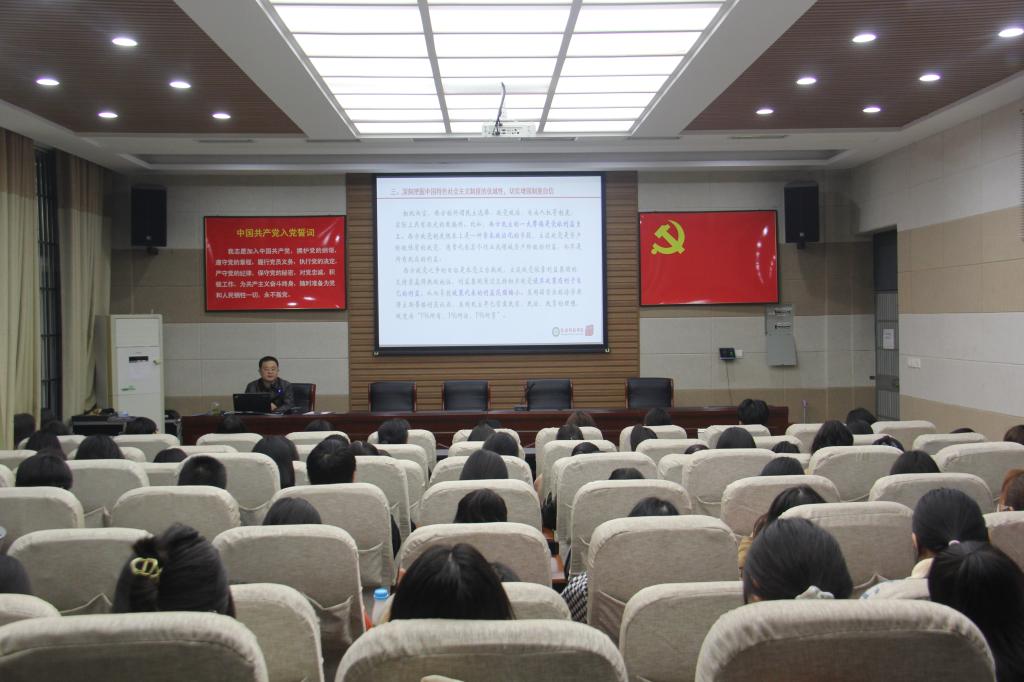 董银银以“坚持四个自信,争做时代新人”为题,从四个方面为同学们展开报告:一、深刻认识中国特色社会主义道路来之不易,切实增强道路自信。通过讲述历史事实强调道路自信来自于历史选择的必然性和其创造的经济社会发展奇迹。二、深刻理解中国特色社会主义理论的科学性,切实增强理论自信。指出理论自信来自于其本身的真理性、检验的成果和人民的广泛认同。三、深刻把握中国特色社会主义制度的优越性,增强制度自信。结合疫情防控时期我国人民的作为,指出制度自信来自于其契合国情和展示出的优势。四、深刻领会中国特色社会主义文化的生命力,切实增强文化自信。文化自信有着强大的创造力和广泛的影响力,它源于革命文化和社会主义先进文化绘就的鲜亮底色。董书记用幽默风趣的语言和真实生动的例子,为同学们深刻诠释了四个自信的深刻内涵,整场报告会掌声不断,会后同学们纷纷表示受益匪浅。