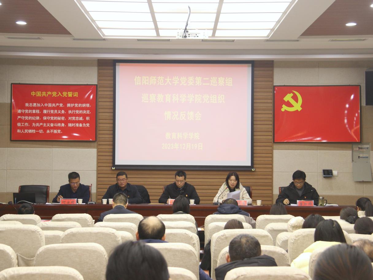 校党委第二巡察组向教育科学学院党委反馈巡察情况时间:2023-12-20 18:42:10 来源: 作者: 阅读: 次12月19日,校党委第二巡察组巡察教育科学学院党委情况反馈会在教科楼301会议室召开。校党委巡察工作领导小组成员、党委巡察办主任王振海对巡察整改提出要求,第二巡察组组长刘党英反馈了巡察情况。学院党委书记房加帅就做好巡察整改工作作表态发言。巡察组全体成员、学院领导班子成员、全体教职工、离退休教职工代表和学生代表参加。会议由院长何安明主持。  按照学校党委统一部署,10月10日至11月10日,党委第二巡察组对教育科学院党委进行了为期一个月的巡察。巡察组坚持以习近平新时代中国特色社会主义思想为指导,坚守政治巡察定位,重点围绕“四个聚焦”,以问题为导向,从严从实开展巡察监督;通过听取汇报、调阅资料、列席会议、座谈交流、走访调研、受理信访等方式,深入了解有关情况,顺利完成了巡察任务。 刘党英指出,近年来教育科学学院党委坚持以习近平新时代中国特色社会主义思想和党的二十大精神为主导,在推进党建与事业发展有机融合方面取得显著成效,党委领导班子踏实务实,积极进取,整体发展呈现向上向好态势。巡察也发现一些问题,如落实党中央决策部署和省委重大战略任务及学校党委重要工作安排有差距,学习贯彻习近平新时代中国特色社会主义思想,落实立德树人根本任务存在薄弱环节,党的二十大精神不深入,落实意识形态工作责任制不到位等。同时,巡察组就强化理论武装、管党治党,强化组织建设、整改落实以及围绕教育学博士授权点建设工作等方面提出了整改建议。 王振海对教育科学学院巡察整改工作提出要求。学院党委要提高政治站位,深刻领会巡察整改重大政治意义。认真学习习近平总书记关于巡察整改的重要讲话和指示批示精神,增强抓好巡察整改的自觉性、坚定性,用整改的行动和效果体现“两个维护”;要压实责任,坚决把巡察反馈问题整改到位;扛牢整改主体责任,严格履行第一责任人责任,切实履行“一岗双责”,确保整改取得应有成效;要注重标本兼治,以整改促进各项事业发展提升;立足治标、着眼治本,深刻剖析、深挖根源,举一反三、标本兼治,持续深化和巩固巡察整改成果,以巡察整改成效促进事业发展,以事业发展检验巡察整改成效。 房加帅表示,巡察组反馈的意见实事求是、客观全面、深刻中肯,学院将围绕以下三点认真开展整改工作。一要提高认识,严肃对待,对反馈的问题照单全收;二要聚焦问题,立行立改,逐一解决;三要抓好结合,强化引领,全面转化整改成果。 会前,王振海向学院党委书记、院长传达了校党委书记王文鹏同志在党委会上的重要讲话精神;刘党英等向学院党委书记、院长反馈了巡察情况,移交了反馈材料。 - 上一篇:教育科学学院举办青苗计划系列活动