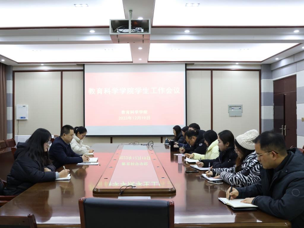 教育科学学院召开学生安全稳定工作会议时间:2023-12-20 17:56:01 来源: 作者: 阅读: 次12月19日,教育科学学院于教科楼402会议室召开学生工作会议,院党委副书记董银银、全体专兼职辅导员参加会议。 会上,董银银就近期学生宿舍安全检查、校园交通安全、重点关注学生排查等情况作了通报,并指出,临近考研与期末考试,学生稳定安全形势严峻复杂,全体专兼职辅导员要进一步加强学生稳定安全的风险防控和隐患排查,下沉宿舍和学生一线,了解学生思想动态,及时化解矛盾冲突,全面提升学生安全稳定工作的针对性和实效性,坚决扎牢校园稳定安全防线。 会后,我院制定了辅导员24小时值班计划,要求全体专兼职辅导员要认真履职尽责,严格执行值班要求,从严从实从细做好学生稳定安全教育工作。