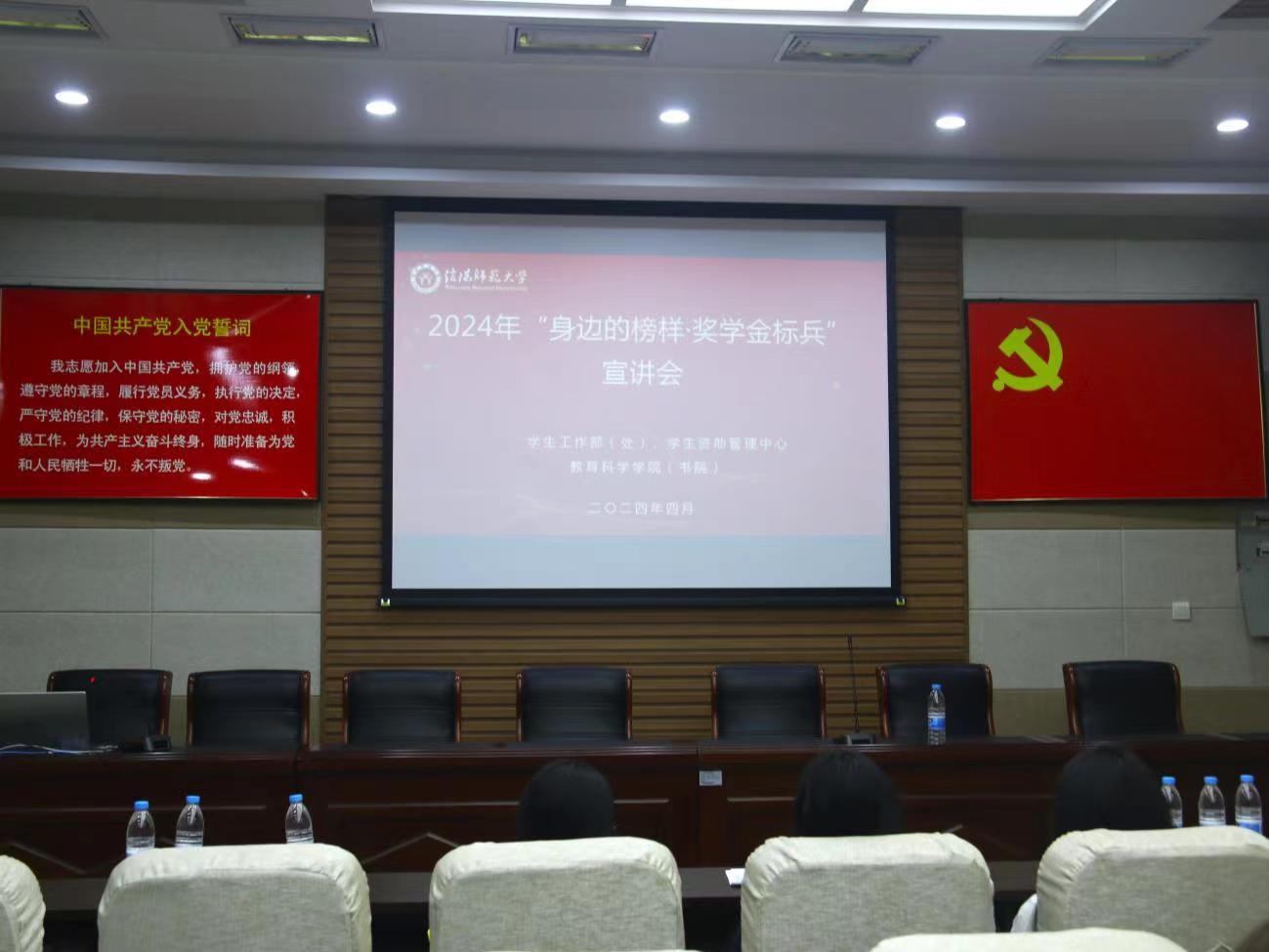 教育科学学院举办“身边的榜样·奖学金标兵”宣讲活动时间:2024-04-24 07:25:45 来源:教科院新闻宣传中心 作者:荆媛媛 吴皓 阅读: 次为引导激励教科学子向先进学习、向典型看齐,大力营造“学有榜样、干有目标”的良好氛围。4月23日,教育科学学院于教科楼301会议室举办“身边的榜样·奖学金标兵”宣讲活动。活动通过线上直播与线下观看两种形式同步进行,教育科学学院资助专员杨艺卓和2022级、2023级学生参与本次活动。   会议伊始,杨艺卓向同学们介绍了此次活动的三位分享者,并嘱咐同学们认真聆听。随后,奖学金标兵22级历史文化学院邹馨剑、21级文学院赵一嘉、商学院刘栋平三位同学依次分享了自己的成功故事。邹馨剑以“万山难阻凌云志,奋楫扬帆争朝夕”为题向同学们讲述自己的成长经历,使同学们认识到付出与收获并存。赵一嘉以“努力是我唯一的可控因素”为题,阐明如何在知行合一中历练成长。刘栋平以“不啻微芒,造炬成阳”为题,秉承师大校训,从“厚德 崇实 善学 敏行”四个方面进行讲述,向同学们诠释了汗水与成长共舞的拼搏历程。活动最后,杨艺卓作总结讲话,为同学们指出此次活动中值得学习的各个方面,她强调,这些经验和智慧将成为同学们前行的宝贵财富。 本次活动的举办有利于促进同学们见贤思齐、对标先进,勇往直前,书写属于自己的辉煌篇章,让榜样精神在教科院蔚然成风。 编辑:荆媛媛 吴皓 摄影:张露颖 审核:杨艺卓 更多精彩请点击公众号链接:https://mp.weixin.qq.com/s/iC76pYZoBV0dan80x-PNoQ