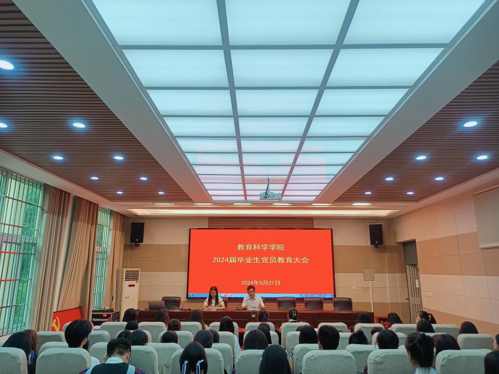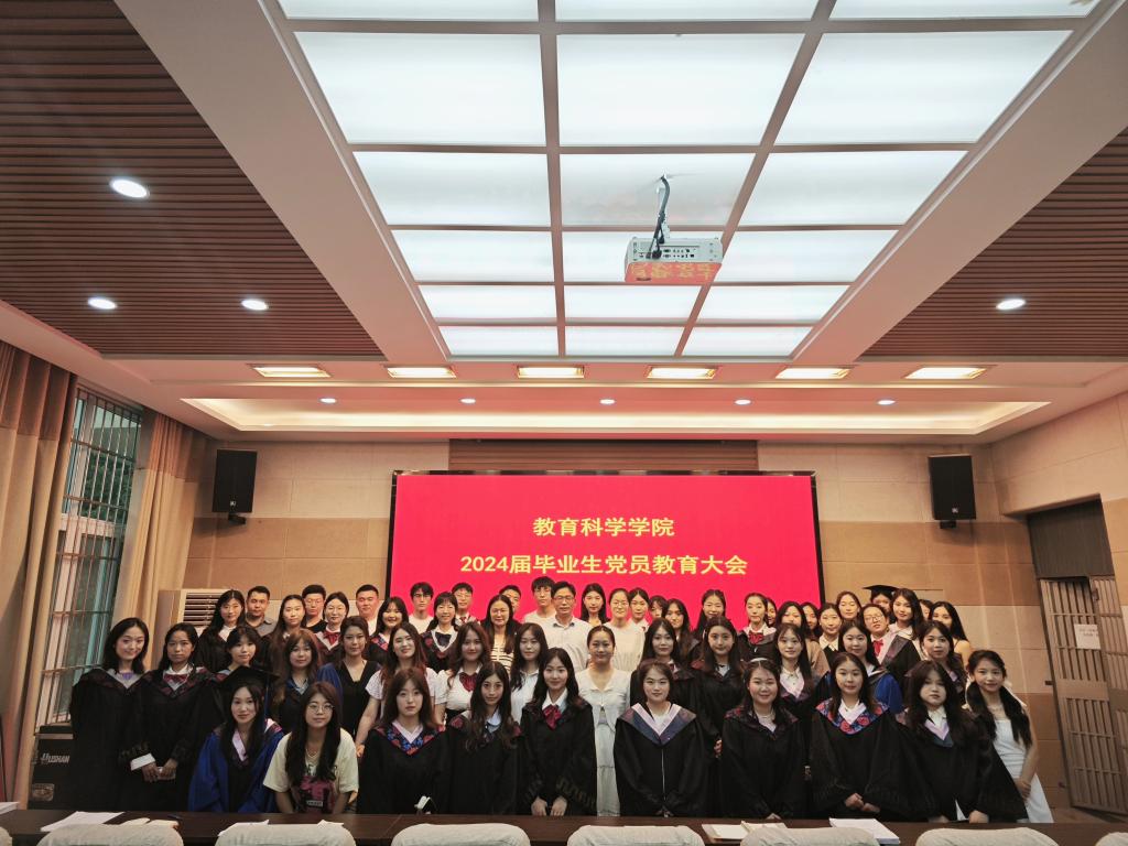 召开毕业生党员教育大会。5月21日下午,教育科学学院在301会议室召开2024届毕业生党员教育大会。学院党委书记房加帅以《带着爱与责任再起航》为题上专题党课,他提出三点要求:一是不忘初心使命,强化政治意识,始终与党中央保持高度一致;二是厚植家国情怀,强化爱国精神,以建设性的态度面对问题挑战;三是培养担当精神,强化底线意识,为中国式现代化挺膺担当。随后,相关工作人员就毕业生党员组织关系转移、离校前后如何发挥好模范带头作用等进行了专题培训。