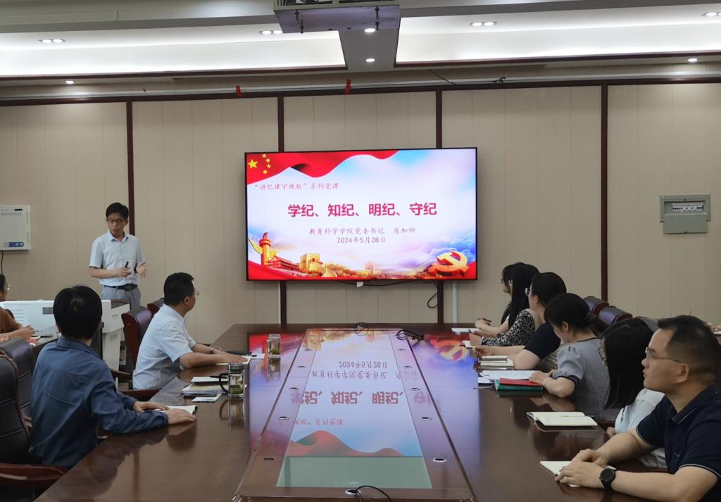 时间:2024-05-31 18:31:18 来源: 作者: 阅读: 次5月份,教育科学学院分党委切实把思想和行动统一到党中央决策部署上来,按照校党委的安排要求,精心谋划,有序推进,把党纪学习教育引向深入。
