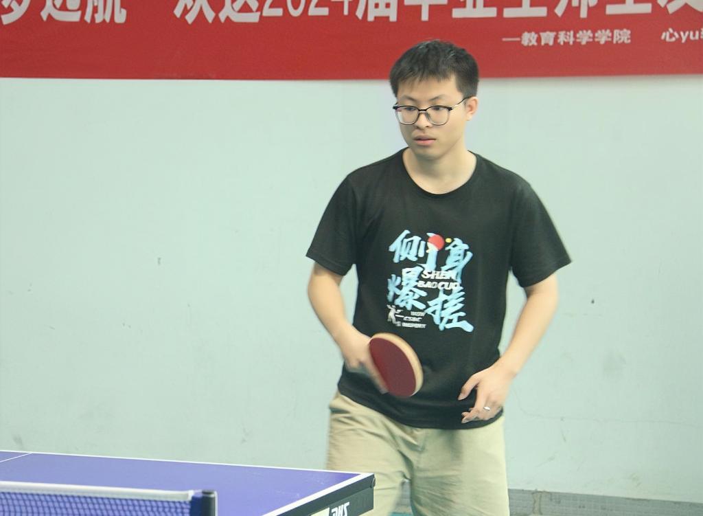 时间:2024-05-31 09:10:19 来源:教科院新闻宣传中心 作者:郭鑫瑶 吴皓 阅读: 次为丰富毕业生离校前的校园生活,进一步增强毕业生与母校的情感,为他们增添一份美好的回忆,营造文明离校氛围。5月29日,教育科学学院于教科楼活动室举办欢送2024届毕业生师生乒乓球友谊赛。教育科学学院团委书记牛洁楠、辅导员吴康、专业课教师李辉辉、王大磊以及2024届部分毕业生参加此次活动。
