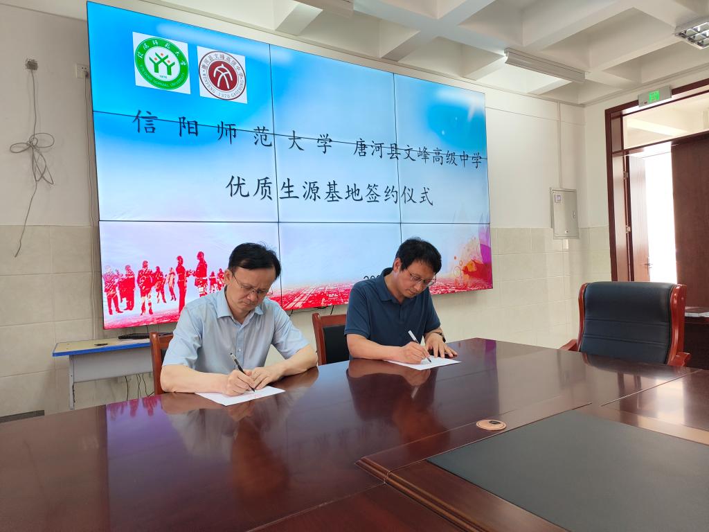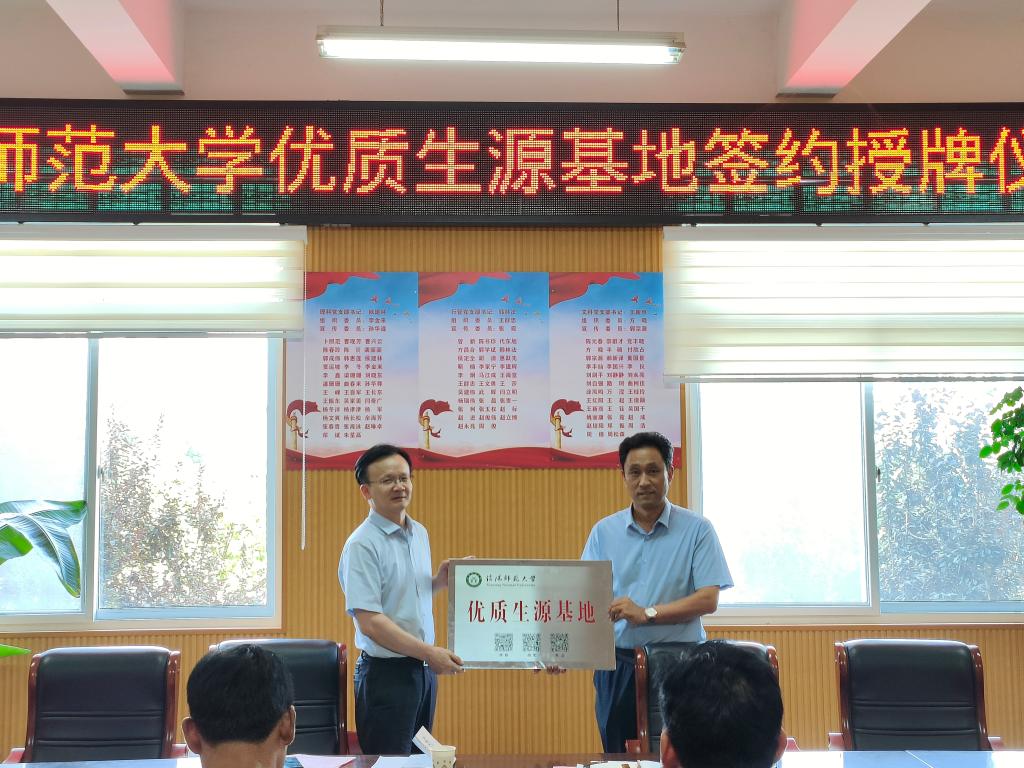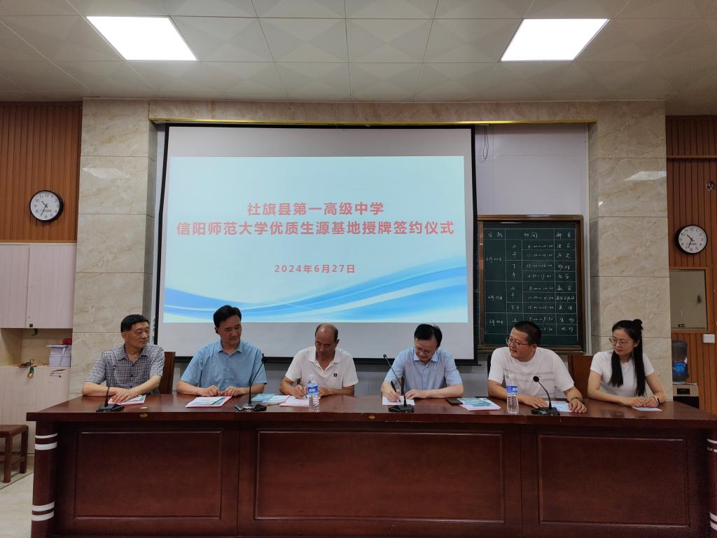 活动期间,教育科学学院招生宣传团队先后抵达社旗县第一高级中学、唐河县文峰高中、唐河县友兰实验高中开展招生宣传工作。咨询现场,学院招生宣传团队以专业的素养和热情的态度,向考生和家长介绍学校的专业设置、师资力量、教学成果以及就业前景等方面的情况。针对考生和家长们关心的录取分数线、专业特色、培养方案等问题,老师们也进行了耐心细致地解答,并为考生们提供了个性化的报考建议。随后,我院分别与社旗县第一高级中学、唐河县文峰高中、唐河县友兰实验高中签订“信阳师范大学生源基地”协议书,并为三所学校授“信阳师范大学优质生源基地”牌匾。
