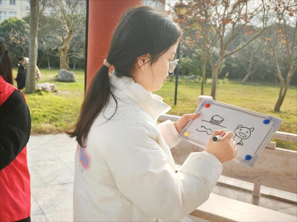 此次活动主要有“夹纸竞走”“你画我猜”“电臀达人”“线穿纸杯”“手忙脚乱”“夹气球”六个环节,参赛者以组为单位,每组三或四人,根据提示推理出活动地点并自由规划闯关路线,每通过一环节,参赛者可获得下一环节的提示,最终用时最少组获胜。在每一个环节开始之前,由相关工作人员进行游戏规则讲解,参赛者可以赛前尝试,然后计时正式开始。在“夹纸竞走”环节,小组成员齐心协力,纸片在接力中见证了朋友之间的默契配合;在“你画我猜”环节,组中一名参赛者根据提示画出所给对象的特征,其他组内参赛者由此猜测,大家都彼此配合,猜出相应答案;在“气球传递”环节,参赛者两两用后背夹气球前进,大家用不同技巧统一步伐,在欢声笑语中完成一个又一个环节。活动最后,按照比赛公平公正的原则,活动负责人公布获奖结果,第二组荣获一等奖;第九组荣获二等奖;第四组荣获三等奖,此次活动在欢笑和激情中结束。