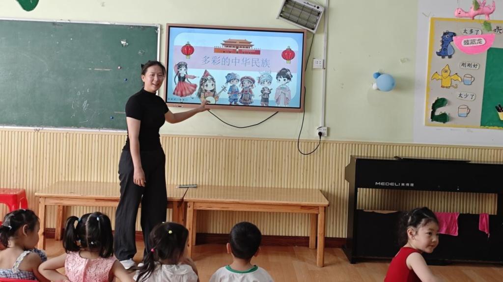 “石榴花开,民族同心”实践团走进南阳市一所幼儿园,以“民族政策,从娃娃抓起”为理念,通过《爱我中华》手指游戏、民族绘本故事、以民族文化为主题的动画短片等幼儿易懂的形式,讲解56个民族的服饰、习俗与文化。让孩子们在互动中感受到各民族文化的魅力,为铸牢中华民族共同体意识注入青春力量。