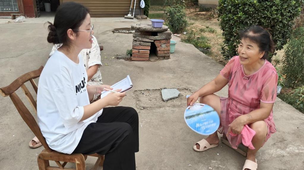 (实践团成员与老人用普通话交流家乡故事)