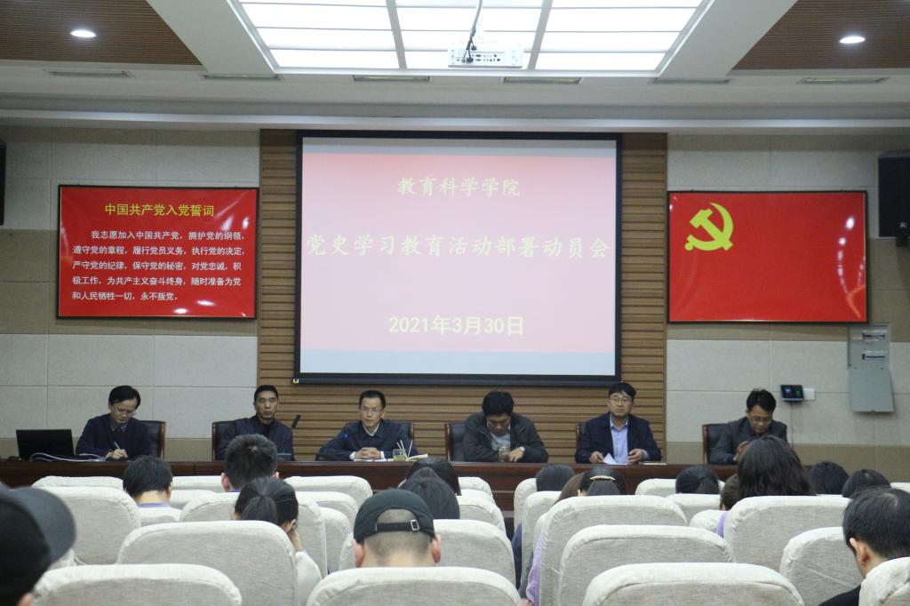时间:2021-04-01 09:57:59 来源: 作者: 阅读: 次为深入学习习近平总书记在党史学习教育动员大会上的重要讲话精神和中央、省委的决策部署,落实学校党史学习教育动员部署会要求,3月30日,教育科学学院在教科楼301会议室召开党史学习教育动员部署会,学院全体教职工参加此次会议。会议由党委书记李辉主持。
