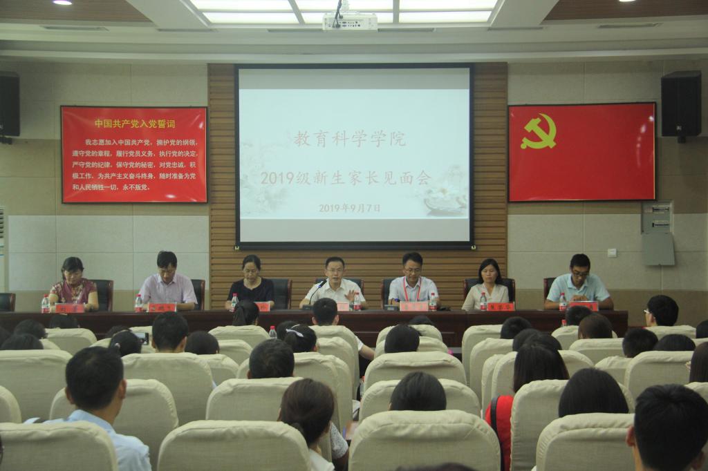 时间:2019-09-09 12:15:09 来源: 作者: 阅读: 次9月7日下午3时,教育科学学院在教科楼301会议室举办2019级新生家长见面会。院党委书记李辉,党委副书记李贵杰,各系主任邢思珍、刘萱、岳鹏飞、焦荣华、吕振勇,2019级班主任王从阳、田园及部分新生家长共同出席了此次见面会。