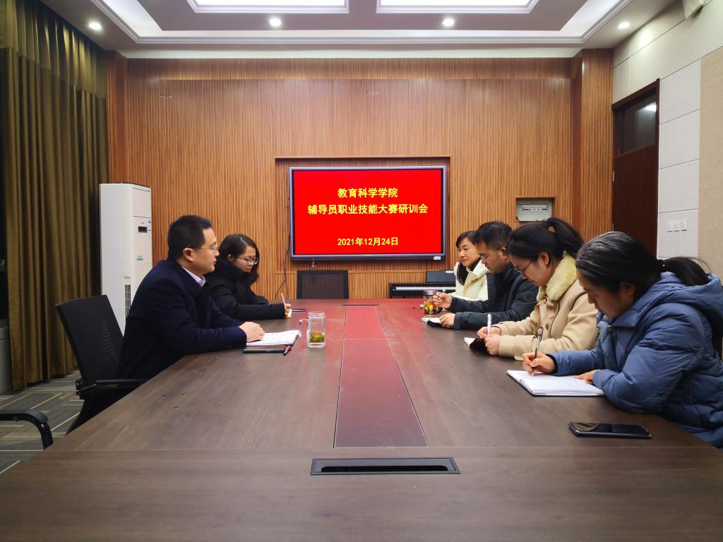 时间:2021-12-26 18:31:08 来源: 作者:田园 阅读: 次12月25日,教育科学学院在教科楼303会议室召开学生工作会议,党委副书记董银银及全体专职辅导员参加会议。