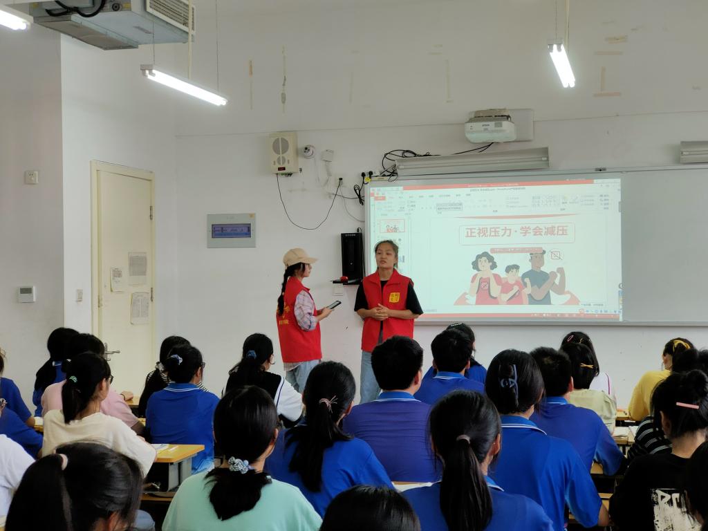 知识宣教,行稳致远。7月11日,教育科学学院“三下乡”社会实践团队结合专业知识深入固始县高级中学第一中学开展心理支教实践活动,讲述“正视压力,学会解压”的主题心理健康课,我院学生王新宇为同学们普及心理健康小知识,倾听同学们的心声,提供解压小技巧,真正做到了将理论运用于实践,付诸于社会。