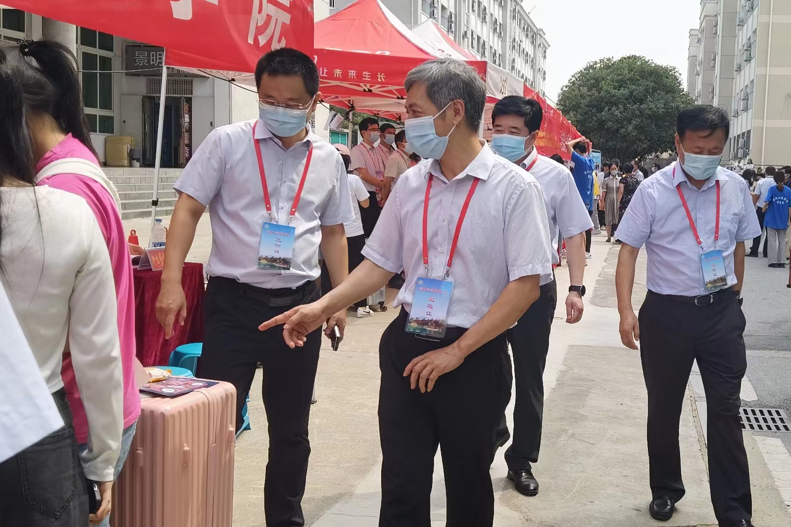 9月11日上午,校长李俊,副校长陈登报带领校办,学生处等相关领导到教育科学学院迎新点,指导学院新生报到工作。