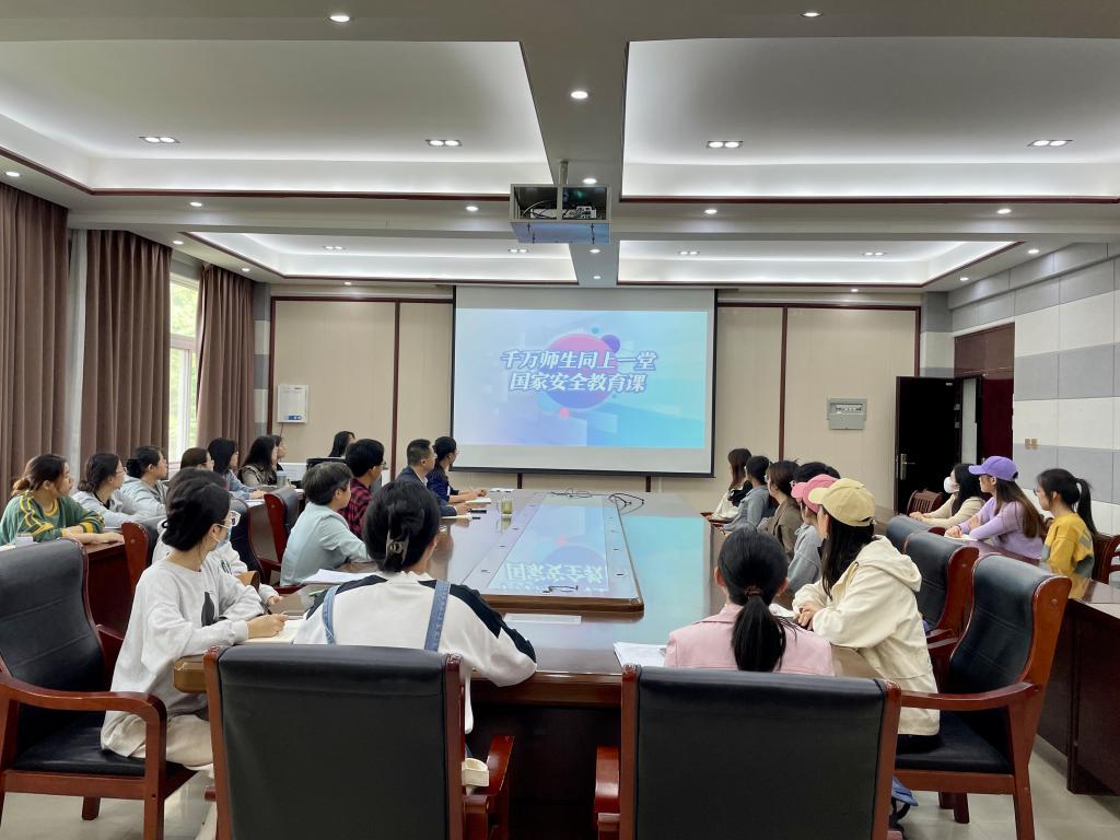 教育科学学院组织观看2023年国家安全教育日直播活动时间:2023-04-19 18:42:52 来源: 作者:刘至涵 郭鑫瑶 阅读: 次2023年4月15日是第八个全民国家安全教育日。为增强学生国家安全意识,普及总体国家安全观,推动国家安全教育进校园,4月15日,教育科学学院组织学生观看“千万师生同上一堂国家安全教育课”,部分学生党员和入党积极分子在402会议室集中观看,院党委书记房加帅、副书记董银银和全体辅导员老师参加,其他师生通过手机观看。。  直播中,张金学老师首先向同学们科普何为国家安全以及国家安全的重要意义,他强调,国家安全是安邦定国的重要基石,必须要深入开展反恐怖、反分裂、反邪教、反间谍斗争,加强国家安全教育,共筑国家安全防线。刘明竹警官总结了常见的网络诈骗手段,提醒同学们牢记“天下没有免费的午餐”,做到“要钱一分不给,给钱一分不要”。沈浩教授强调,数据安全保障能力是国家竞争力的直接体现,数据安全是国家安全的重要方面,也是促进数字经济健康发展、提升国家治理能力的重要议题。 观看结束后,房加帅针对此次活动进行总结,强调我们要自觉关心维护国家安全,增强国家安全意识和素养,人人参与、人人有为,将国家安全意识内化于心,外化于行。同学们也纷纷表示在日常生活中会认真履行维护国家安全的责任和义务,为祖国的安全添砖加瓦。 编辑:刘至涵 郭鑫瑶 审核:田园 摄影:郑佳颖