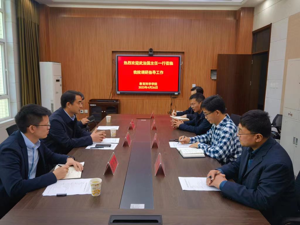 党办主任武治国一行到教育科学学院调研指导工作时间:2023-04-26 15:12:56 来源: 作者: 阅读: 次2023年4月26日上午,校党委办公室武治国、丁其科、陈兴海一行三人受邀到教育科学学院调研,指导基层党建工作。院党委书记房加帅、院长何安明及全体领导班子陪同。 调研会中,房加帅汇报了学院基层党建的基本做法,介绍了教科院探索基层党建的经验及取得成效。武治国对教科院领班班子团结协作及基层党建在引领事业发展中起到的重要作用给予了充分肯定。  - 上一篇:教科学子积极参加“绿茵杯”足球比赛