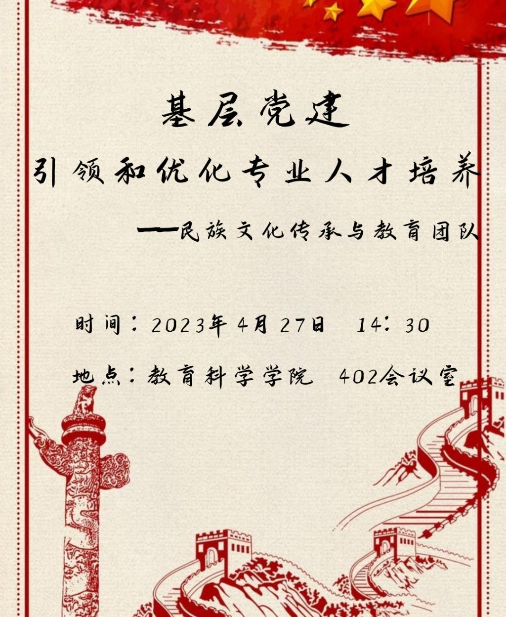 教工第一党支部“共产党员先锋号”民族文化传承与教育团队举办“基层党建引领和优化专业人才培养”学习研讨会时间:2023-04-29 21:55:48 来源: 作者: 阅读: 次在全党深入开展学习贯彻习近平新时代中国特色社会主义思想主题教育活动之际,“共产党员先锋号”民族文化传承与教育团队于4月27日下午在教科楼402会议室举办“基层党建引领和优化专业人才培养”学习研讨会。  研讨会首先学习习近平新时代中国特色社会主义思想第一讲“习近平新时代中国特色社会主义思想是党和国家必须长期坚持的指导思想”,深化对习近平新时代中国特色社会主义思想的核心内容“8个明确”和“14个坚持”及其相互关系的理解,进一步明确习近平新时代中国特色社会主义思想是“全党全国人民为实现中华民族伟大复兴而奋斗的行动指南”,指引着国家政治生活和社会生活。  为了进一步促进党建对教育教学和人才培养的引领,与会者从培养目标的表述、课程体系与毕业要求关系矩阵、教学计划表等方面对“专业人才培养方案”完善和优化进行研讨,大家积极献言献策,充分展现与会党员的使命和担当。通过研讨明确将党员团队工作融入到日常教育教学的重要性,防止“两张皮”,引导团队成员增强政治认同和教书育人责任感。 编辑:管金婵 审核:郑雪松 - 上一篇:教育科学学院召开学生工作会议