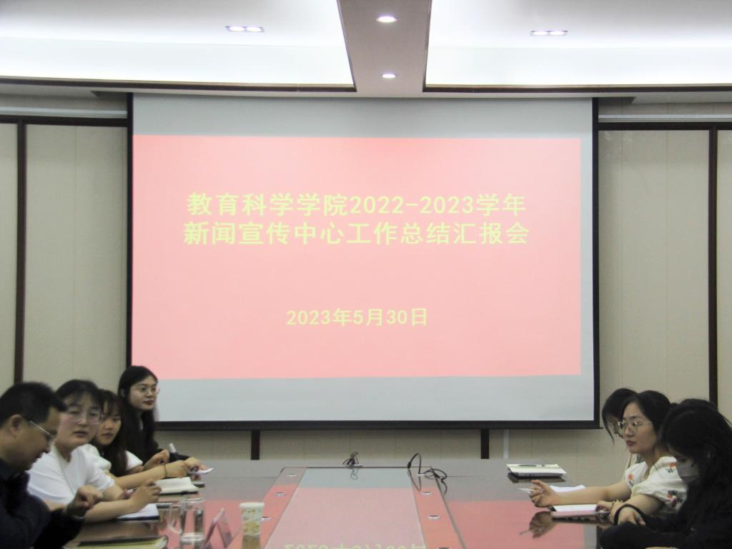 教育科学学院召开2022-2023学年新闻宣传中心工作总结汇报会时间:2023-05-31 18:50:28 来源:教科院新闻宣传中心 作者:刘至涵 荆媛媛 阅读: 次5月30日,教育科学学院于教科楼402会议室召开2022-2023学年新闻宣传中心工作总结汇报会,教育科学学院党委副书记董银银、专职辅导员杨艺卓及新闻宣传中心全体成员出席本次会议。会议由杨艺卓主持。  会议伊始,新闻宣传中心各部门依次汇报本学期工作,总结部门存在的问题并提出改进方案。随后,董银银对本学年新闻宣传工作发表讲话。他对新闻宣传中心本学年工作表示肯定,赞扬了同学们踏实肯干的优良品质,并对接下来的新闻宣传工作提出几点建议:一、提高宣传意识,积极主动地参与到学院宣传工作中;二、提高政治站位,强化责任担当;三、勤学苦练,敢于开拓创新;四、保持认真负责的工作态度和严谨务实的工作作风。 本次会议的顺利召开充分展现了新闻宣传中心积极奋发的精神风貌,进一步提高了学生们的综合素质和工作能力,有力地推动了教科院新闻宣传工作的开展。 编辑:刘至涵 荆媛媛 审核:杨艺卓 摄影:李亦萌