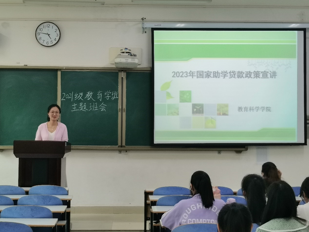 教育科学学院召开2023年度国家助学贷款政策宣讲会时间:2023-05-28 20:07:26 来源: 作者:曹童然 郭鑫瑶 阅读: 次为进一步增强在校学生对国家助学贷款政策的了解和个人征信意识,推进我校助学贷款服务与资助育人工作开展,教育科学学院各班于5月26日至27日召开2023年度国家助学贷款政策宣讲会。  会上,各辅导员向同学们详细讲解了国家助学贷款的政策内容、申请条件、办理流程、办理地点和其他常见问题,鼓励家庭经济困难学生通过国家助学贷款完成学业。为了增强学生的防诈骗和理性消费意识,辅导员还列举了相关的案例向同学们介绍了电信诈骗的危害以及违约还款对个人信用所造成的负面影响,希望同学们用好助学贷款,培养自强自立精神,努力成长成才,不辜负国家和学校的期望。同时要诚信守诺,按时还款,切实加强诚信修养,恪守良好信用,认真履行法定还款义务。 通过此次宣讲会,各班同学对国家助学贷款政策有了更加深入的了解,有利于同学们充分认识诚实守信、理性消费的重要性,增强网络金融风险防范的意识,更有利于推进学院资助育人工作。 编辑:曹童然郭鑫瑶审核:杨艺卓