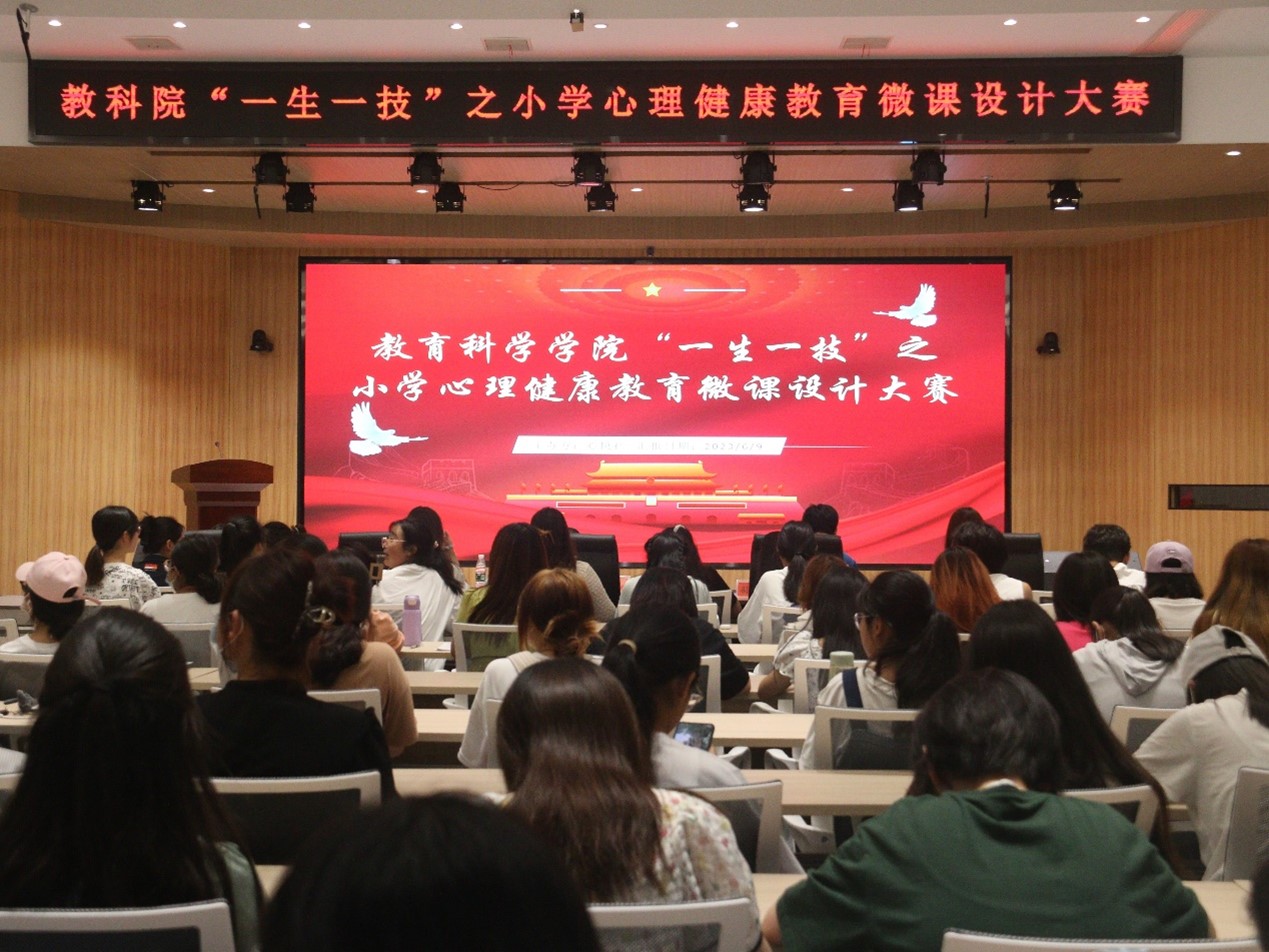 教育科学学院“一生一技”系列活动之小学心理健康教育微课设计大赛落幕时间:2023-06-12 12:25:27 来源:教科院新闻宣传中心 作者:曹童然 罗梦瑶 阅读: 次6月9日,由教育科学学院心悦社举办的“一生一技”系列活动之小学心理健康教育微课设计大赛决赛于谭山书院博雅讲堂举行。本次比赛的评委由化学化工学院党委副书记曲剧、大学生心理健康中心心理健康教育教研室主任许霏、教育科学学院党委副书记董银银、教育科学学院副院长孙天义、教育科学学院心理学博士丁倩担任。  经过初赛、复赛激烈的角逐,共有六组选手进入决赛。决赛现场,各团队主讲人通过“现场模拟授课”的形式进行讲述,并利用提前准备的道具充分地调动现场气氛,实现良好的互动效果。赛后,评委老师对本次决赛进行了专业指导和综合评价。经过评委老师的细致评审,教育科学学院张盼盼组荣获一等奖;化学化工学院邢怡情组、教育科学学院张媛梦组荣获二等奖;教育科学学院冯苗苗组、游媛冉组、张己定组荣获三等奖。 本次的微课设计比赛旨在提升我校心理育人工作质量,提高我校学生的心理素质和心理育人能力,让同学们将所学知识灵活运用到实践中,并推动其深入关注小学生心理健康问题,全面提高教学质量,为未来步入教师行业打下坚实基础。 编辑:曹童然 罗梦瑶 审核:杨艺卓 摄影:李亦萌