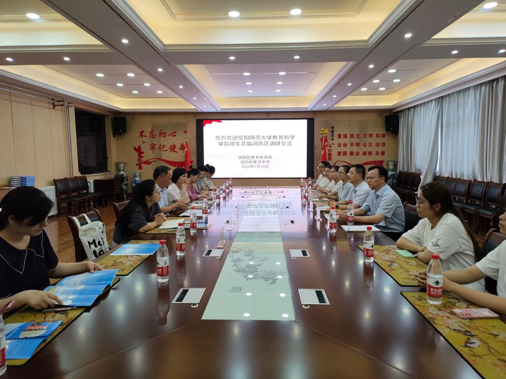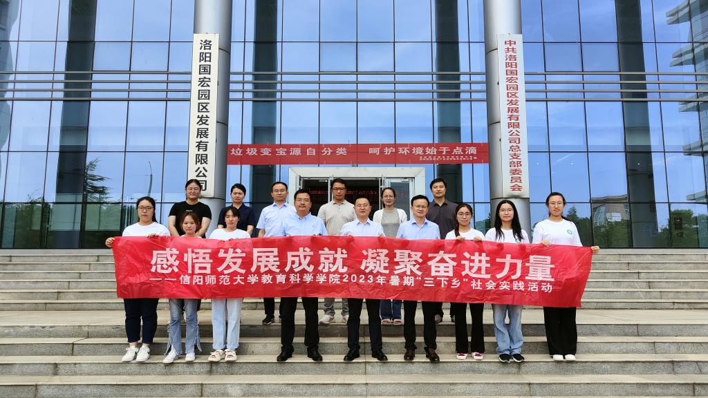 教育科学学院开展“学习二十大 奋进新征程”暑期“三下乡”社会实践活动时间:2023-07-12 11:01:35 来源: 作者: 阅读: 次为深入学习宣传贯彻习近平新时代中国特色社会主义思想,全面贯彻落实党的二十大精神,引导和帮助广大青年学生在与现实相结合的“大思政课”中“受教育、长才干、作贡献”,7月8日-10日,教育科学学院以“学习二十大 奋进新征程”为主题,组织开展暑期“三下乡”社会实践活动。 感悟发展成就,凝聚奋进力量。7月8日,实践团队来到了洛阳国宏园区发展有限公司,师生共同参观调研了由园区公司开发、建设和运营的中原绿色智造产业园、国宏先进制造产业园等5大园区,深入了解了企业创新发展之路。双方就高质量共建大学生社会实践基地召开座谈会,会上就如何进一步推动深度交流与合作、共同助力人才培养等问题进行了深入探讨。会后,双方负责人签署“大学生社会实践基地”协议并举行授牌仪式。  喜看家乡变化,共话乡村振兴。7月9日,实践团队先后来到了栾川县庙子镇庄子村及高崖头村、赤土店镇等乡村振兴示范村,在相关负责人的带领下从乡村建设、乡村治理、乡村发展等多方面深入调研乡村振兴。在庄子村调研了乡村旅游和民宿建设等新农村建设,在高崖头村参观学习了幼儿日间照料、老人康养服务项目等一体化建设的乡村治理新模式,在赤土店镇考察了乡镇企业建设发展,并深入洛钼集团采矿现场及生产车间,参观调研了现代化智能采矿技术。  发挥专业特色,守护心理健康。7月10日,实践队一行到涧西区调研心理健康教育工作,并实地参观了洛阳五中的心理健康教育开展情况,听取了涧西区教师代表及该院学生代表带来的心理健康教育公开课。双方围绕心理健康教育和家庭教育中的实际问题召开座谈会,会上就心理测评工作、“医教”结合模式、班主任在心育工作中的作用、家校社协同育人等内容展开深入探讨和交流,并举行了大学生社会实践基地签约授牌仪式。