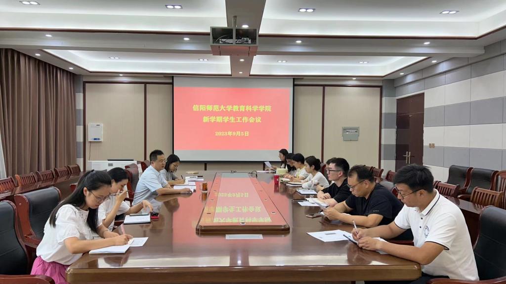 教育科学学院召开2023年秋季学期学生工作会时间:2023-09-06 21:45:59 来源: 作者: 阅读: 次9月5日下午,教育科学学院在教科楼402会议室召开2023年秋季学期学生工作会,院党委副书记董银银和全体专兼职辅导员参加会议。  会上,董银银对本学期班主任选聘调整情况进行说明,带领全体班主任共同学习《教育科学学院专兼职辅导员(班主任)责任书》。全体辅导员围绕共青团工作、日常教育管理服务、心理健康教育、学生就业创业、网络舆情和突发事件应对等各项工作进行研讨交流。随后,董银银对新学期学生工作进行部署安排:一是准确掌握学生返校情况,做好数据统计工作,及时走访学生宿舍。二是做好开学后学生心理健康教育工作,多渠道了解学生心理状况,全方位为学生心理辅导和咨询工作护航,筑起校园心理防护屏障。三是围绕思想政治、学风、安全等方面上好“开学第一课”,帮助学生树立理想信念、巩固学风建设、加强安全教育,迅速调整状态,引导学生在新学期迈上新的高度。 会后,全体专兼职辅导员签署《教育科学学院专兼职辅导员(班主任)责任书》。