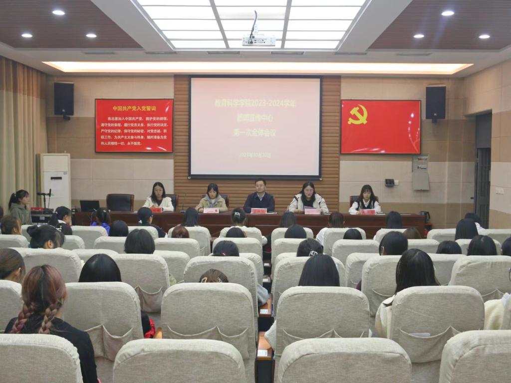 教育科学学院召开2023—2024学年新闻宣传中心第一次全体会议时间:2023-10-21 08:00:41 来源:教科院新闻宣传中心 作者:郭鑫瑶 吴皓 阅读: 次10月20日,教育科学学院于教科楼301会议室召开2023—2024学年新闻宣传中心第一次全体会议,教育科学学院党委副书记董银银,专职辅导员杨艺卓,主席团执行主席李玮莹,2022届部长、副部长以及新闻宣传中心全体成员参与会议。 会议伊始,学生会执行主席李玮莹宣读新闻宣传中心新一届学生干部名单,并表示热烈欢迎。接着,2022届主任以及部长、副部长分享了在新闻宣传中心工作的经验与建议,并对新一届的干部表示了祝福与期望。随后新闻宣传中心主任朱亚彤对2023级新成员提出以下几点要求:一、保持专业素养,多读、多看、多思;二、重视学习与工作的协调,将学习放在第一位;三、培养创新精神。 会议最后,董银银进行总结讲话。他对部门工作与成员的付出给予肯定,讲述了新闻宣传工作的重要性,表示中心成员对待工作要做到用心、用情、用力,并强调新闻工作应与国家大政方针紧密契合,保证思想政治上的高站位。杨艺卓对往届成员表示感谢,讲述了接下来工作的重心,希望中心成员对新闻宣传中心的工作保持热爱,能够有所收获,有所进步,与新闻宣传中心共同成长。  本次会议的成功举办有利于各部门间加强联系,各成员间增进感情,增强中心成员的责任感与使命感,充分展现了新闻宣传中心团结奋进的精神风貌,推动了教育科学学院新闻宣传工作的展开。 编辑:郭鑫瑶 吴皓 审核:杨艺卓 摄影:张梦灵 李亦萌