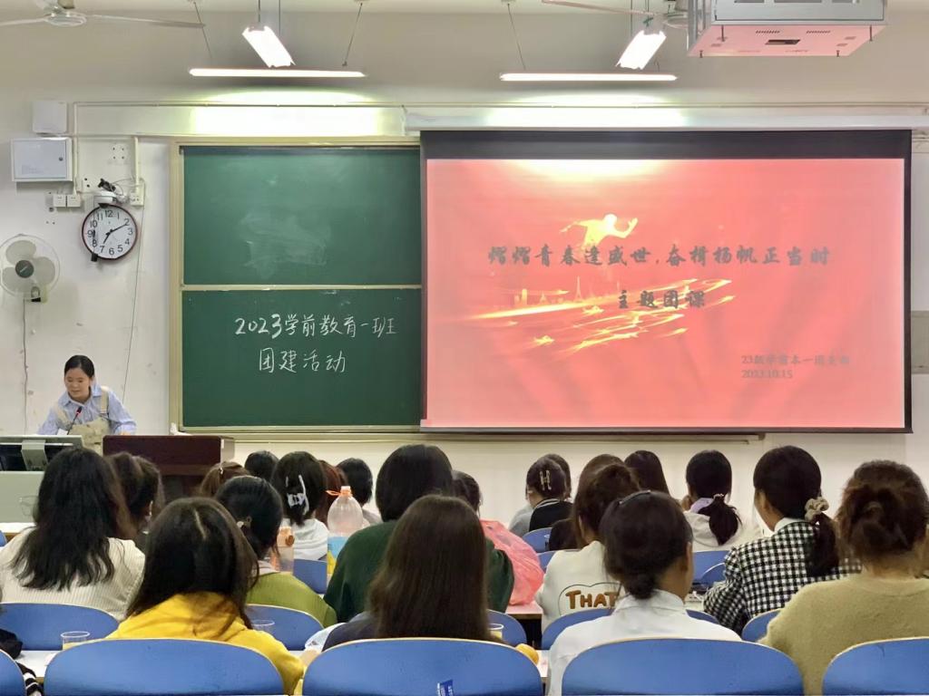 教育科学学院顺利开展2023级“熠熠青春逢盛世,奋楫扬帆正当时”主题教育活动时间:2023-10-21 12:49:27 来源: 作者:郭鑫瑶 崔佳怡 阅读: 次为激励2023级学子牢记历史,不忘初心,厚植爱国情怀,坚定理想信念,肩负起青年一代的使命与担当,10月11-20日,教育科学学院开展2023级“熠熠青春逢盛世,奋楫扬帆正当时”主题教育活动。  承载红色记忆,肩负时代使命。在本次主题教育活动中,各班级、团支部围绕“理想信念,价值引领”的主题,组织本班同学举办主题团课、主题征文、观看红色电影、课前十分钟唱国歌、讲述真情故事等活动。在班长、学委的号召下,同学们以高涨的热情参与到活动中。同学们的积极参与展现了青年一代坚定理想信念,积极投入祖国建设,为祖国建设添砖加瓦的热情和决心。 此次主题活动的顺利举行不仅涵养了同学们的家国情怀,而且增强了同学们的责任意识,营造了浓厚的爱国氛围,同时也展现了教科学子积极响应时代主旋律,争当时代好青年的卓越风采。 编辑:郭鑫瑶 崔佳怡 审核:杨艺卓