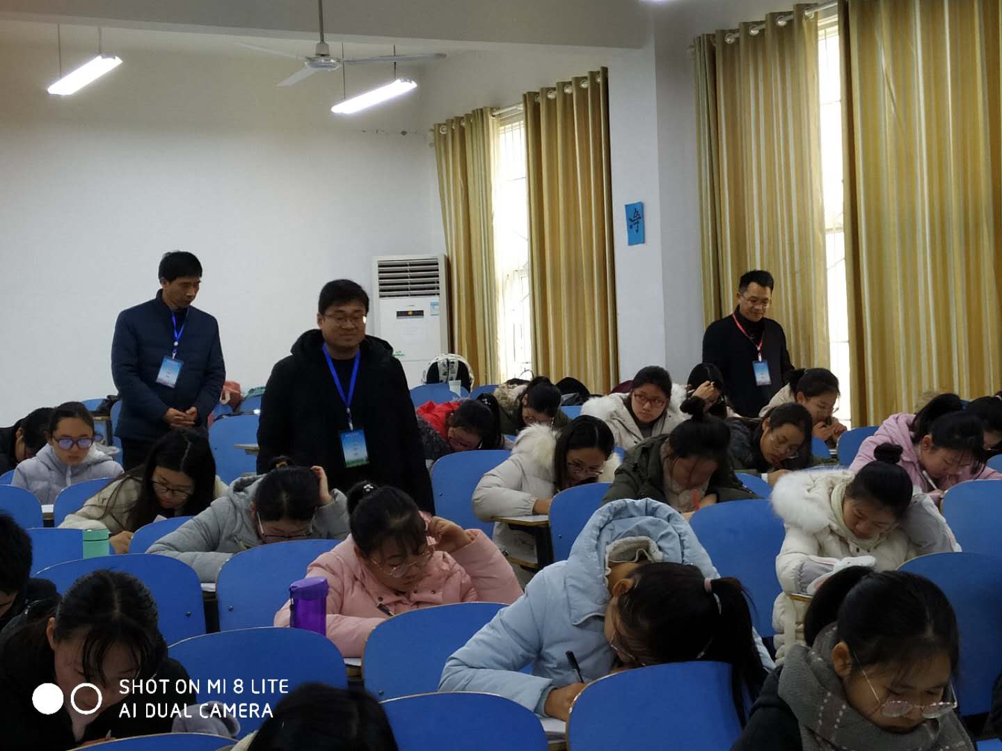 时间:2019-01-02 07:59:30 来源: 作者: 阅读: 次2019年1月2日上午,我校公修课考试如期进行,为严肃考风考纪,规范考务管理,确保期末考试相关工作有序进行,1月2日,教育科学学院副院长郭勇、副院长陈天顺和副书记李贵杰在教学秘书的陪同下深入期末考试现场,进行期末考试巡查工作。