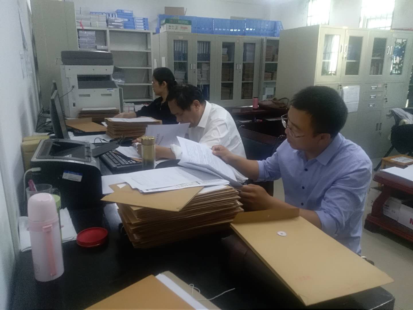 2019届本科毕业论文工作已经结束。为了掌握2019届本科毕业论文的完成质量及存在问题,切实做好本科毕业论文设计工作。2019年5月22日督导员王书进副教授、邢思珍副教授、杨建朝副教授在教学办公室对2019届本科毕业论文进行了全面检查。检查发现,本科毕业论文总体情况良好,只是表格的填写存在一些细节问题:如时间推算有误;表格题头不居中等。