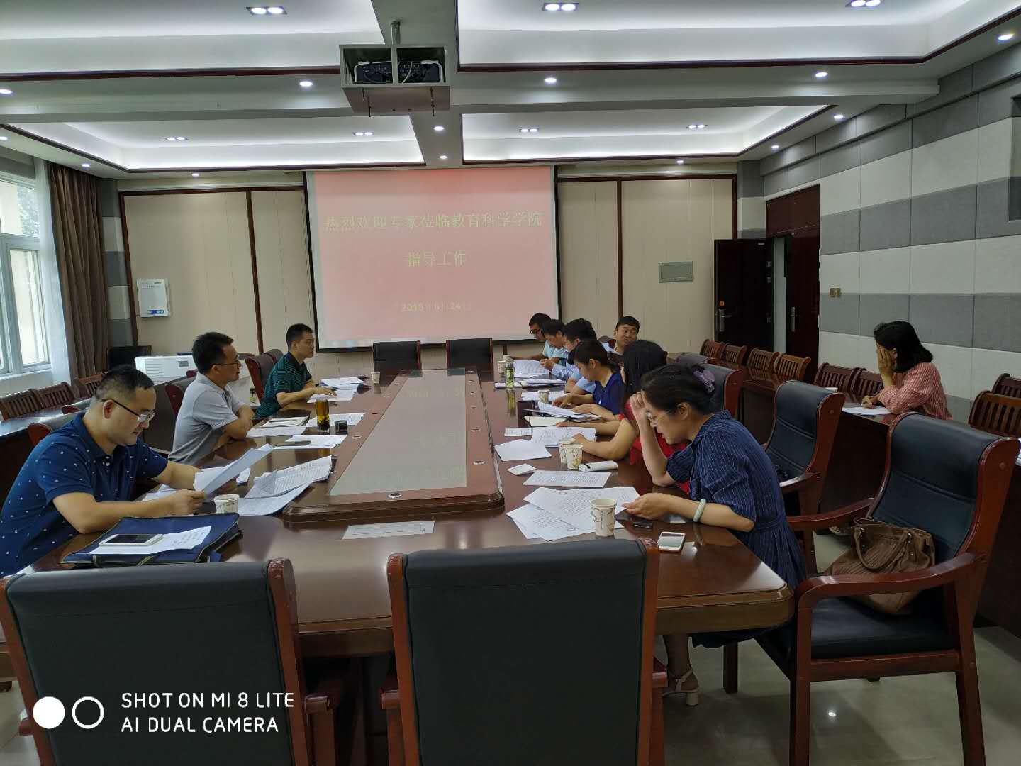 时间:2019-06-24 18:34:35 来源: 作者: 阅读: 次2019年6月24日上午,教务处副处长李贵杰一行莅临教育科学学院指导2019版培养方案修订工作,会议由教学副院长郭勇主持,参会人员有各系主任、副主任及教学工作人员等。